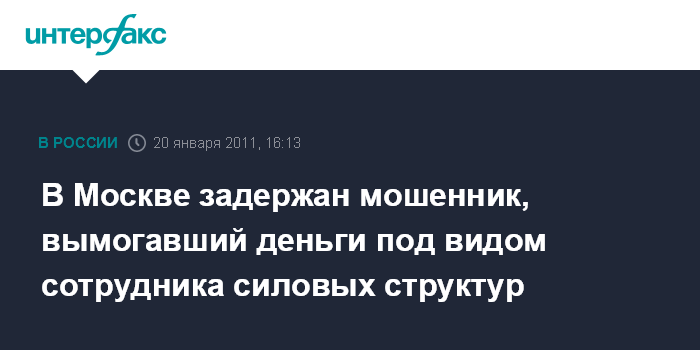 Москва. 20 января. INTERFAX.RU - Столичная милиция задержала мошенника, выдававшего себя за сотрудника правоохранительных ведомств и вымогавшего у коммерсантов деньги за покровительство, сообщил "Интерфаксу" источник в правоохранительных органах.