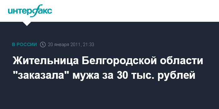Жительница Белгородской области "заказала" мужа за 30 тыс. рублей