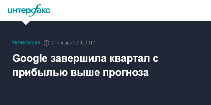 Нью-Йорк. 21 января. INTERFAX.RU - Чистая Google Inc. по итогам четвертого квартала оказалась выше ожиданий рынка. Оптимизм относительно восстановления экономики способствовал увеличению компаниями расходов на онлайн-рекламу, сообщило агентство Bloomberg.