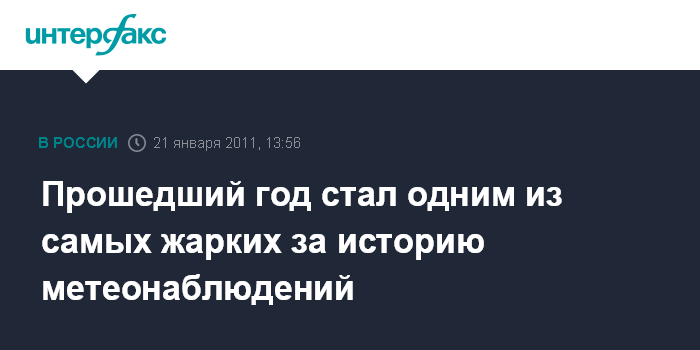 Нью-Йорк. 21 января. INTERFAX.RU - Прошедший год стал одним из самых жарких за историю метеонаблюдений, сообщило агентство Bloomberg со ссылкой на Британское метеобюро.