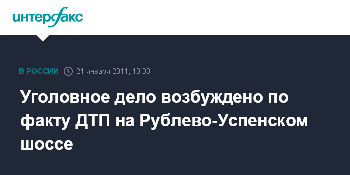 Москва. 21 января. INTERFAX.RU - По факту автоаварии, произошедшей 19 января на Рублево-Успенском шоссе, возбуждено уголовное дело, сообщил "Интерфаксу" в пятницу официальный представитель подмосковного ГУВД Евгений Гильдеев.
