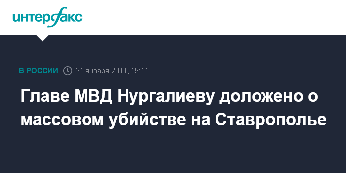 Москва. 21 января. INTERFAX.RU - Министр внутренних дел РФ Рашид Нургалиев проинформирован о массовом убийстве, совершенном в Ставрополе, сообщили в пресс-центре МВД РФ.