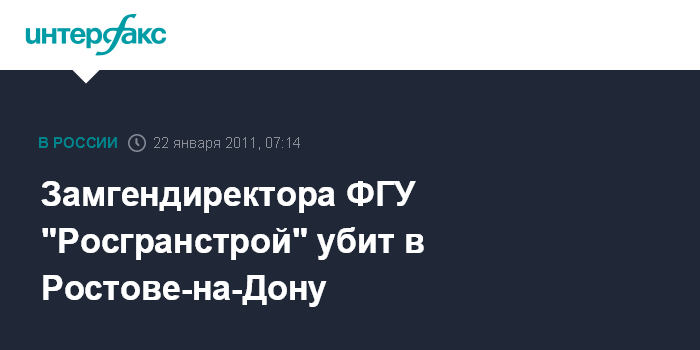 Ростов-на-Дону. 22 января. ИНТЕРФАКС - Убитый в Ростове-на-Дону вечером в пятницу местный житель являлся заместителем генерального директора ФГУ "Росгранстрой", сообщили агентству "Интерфакс-Юг" в правоохранительных органах города.
