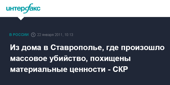 Москва. 22 января. INTERFAX.RU - В Следственном комитете РФ подтвердили, что из дома в Ставрополе, где убили семью криминального авторитета, украдены ценные вещи.