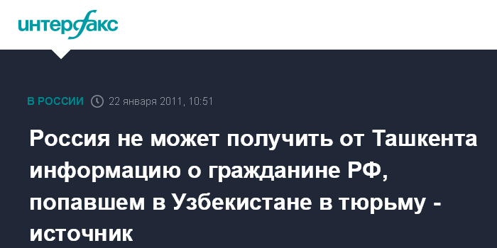 Россия не может получить от Ташкента информацию о гражданине РФ, попавшем в Узбекистане в тюрьму - источник