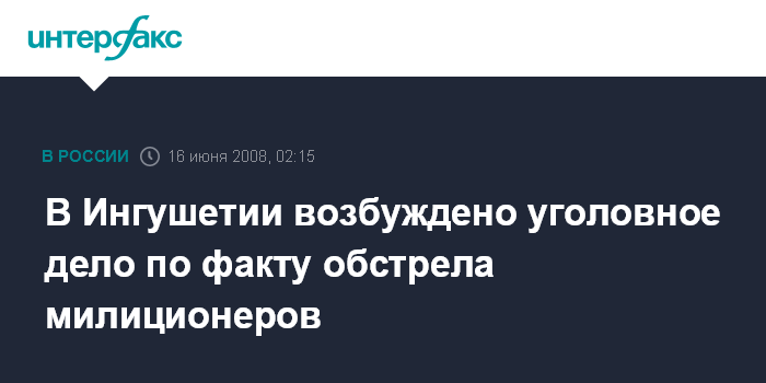 Назрань. 16 июня. ИНТЕРФАКС-ЮГ - По факту обстрела патрульной машины в ингушском городе Малгобек возбуждено уголовное дело.