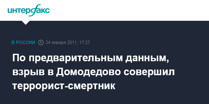 По предварительным данным, взрыв в Домодедово совершил террорист-смертник