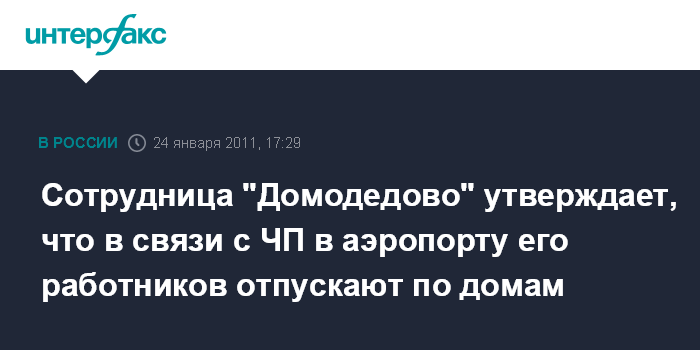 Сотрудница "Домодедово" утверждает, что в связи с ЧП в аэропорту его работников отпускают по домам