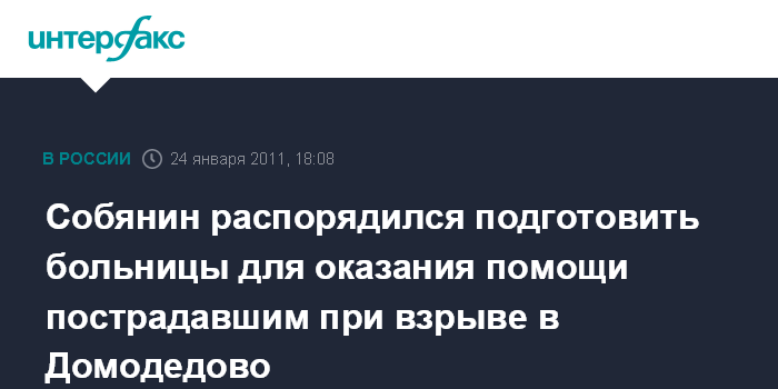 Собянин распорядился подготовить больницы для оказания помощи пострадавшим при взрыве в Домодедово