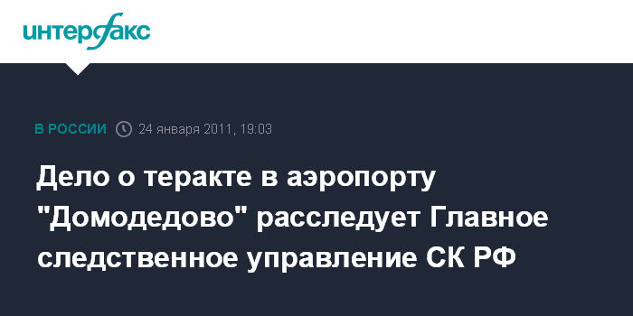 Москва. 24 января. INTERFAX.RU - Руководство СК РФ распорядилось принять к производству уголовное дело о теракте в аэропорту "Домодедово" главному следственному управлению (ГСУ) комитета, сообщил официальный представитель СК РФ Владимир Маркин.