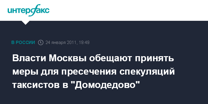 Власти Москвы обещают принять меры для пресечения спекуляций таксистов в "Домодедово"