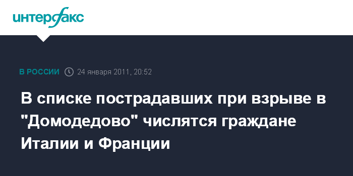 В списке пострадавших при взрыве в "Домодедово" числятся граждане Италии и Франции