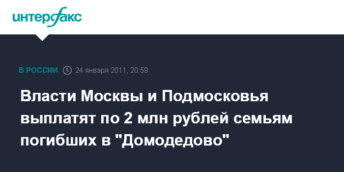 Власти Москвы и Подмосковья выплатят по 2 млн рублей семьям погибших в "Домодедово"