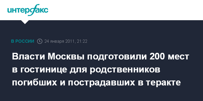 Власти Москвы подготовили 200 мест в гостинице для родственников погибших и пострадавших в теракте