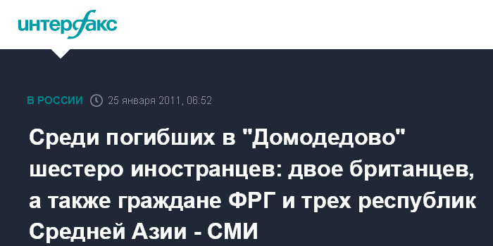 Среди погибших в "Домодедово" шестеро иностранцев: двое британцев, а также граждане ФРГ и трех республик Средней Азии - СМИ