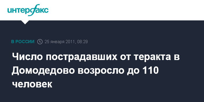 Число пострадавших от теракта в Домодедово возросло до 110 человек