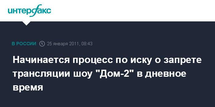 Москва. 25 января. INTERFAX.RU - Пресненский суд Москвы во вторник начнет рассматривать по существу иск с требованием запретить дневную трансляцию реалити-шоу "Дом-2".