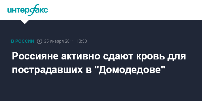 Россияне активно сдают кровь для пострадавших в "Домодедове"