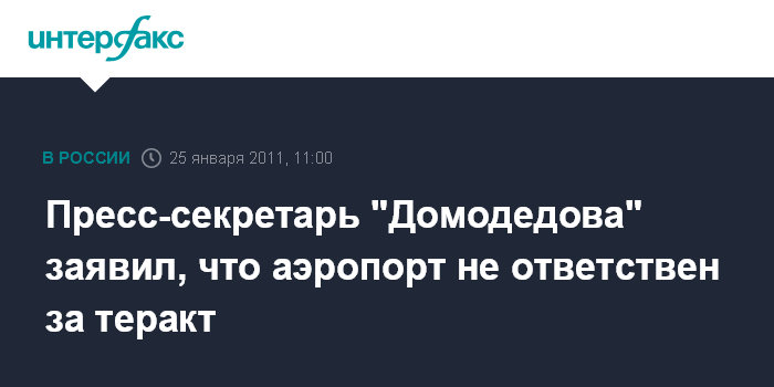 Пресс-секретарь "Домодедова" заявил, что аэропорт не ответствен за теракт