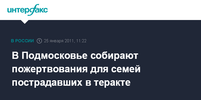 Красногорск. 25 января. INTERFAX.RU - В Московской области откроют благотворительный счет семьям погибших и пострадавших при теракте в аэропорту "Домодедово", заявил на заседании правительства Московской области во вторник губернатор региона Борис Громов.