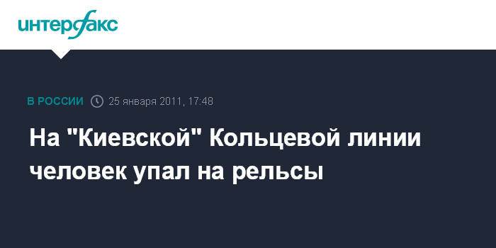 Москва. 25 января. INTERFAX.RU - На станции "Киевская" Кольцевой линии столичного метрополитена во вторник вечером под поезд упал пассажир, сообщили "Интерфаксу" в пресс-службе метро.