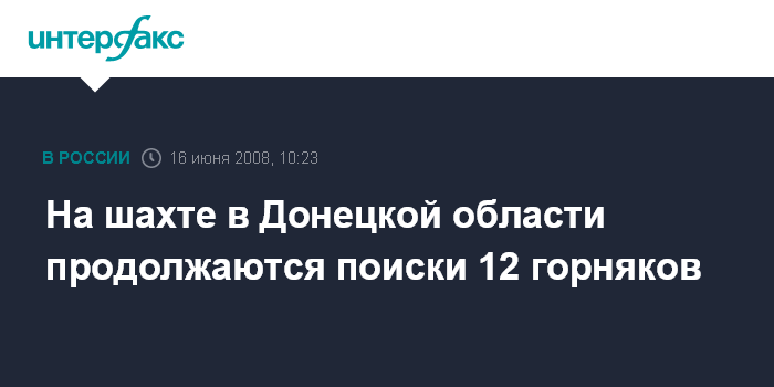 Москва. 16 июня. INTERFAX.RU - В Енакиево (Донецкая область) на шахте имени Карла Маркса продолжаются поиски 12 горняков, сообщает пресс-служба Министерства по чрезвычайным ситуациям Украины в понедельник утром.