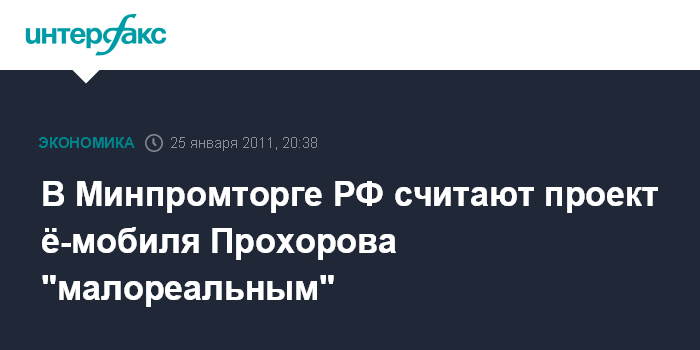 В Минпромторге РФ считают проект ё-мобиля Прохорова "малореальным"