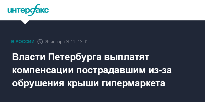 Власти Петербурга выплатят компенсации пострадавшим из-за обрушения крыши гипермаркета