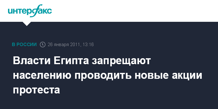 Каир. 26 января. INTERFAX.RU - Министерство внутренних дел Египта предупредило в среду, что запрещает проведение в стране новых антиправительственных демонстраций.