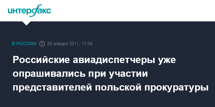 "Российские авиадиспетчеры уже опрашивались в рамках расследования катастрофы, в том числе при участии представителей польской прокуратуры", - подчеркнул собеседник "Интерфакса".