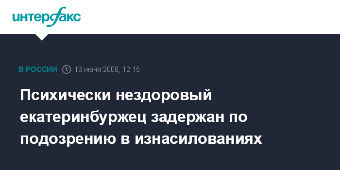 Москва. 16 июня. INTERFAX.RU - В Екатеринбурге задержан местный житель, подозреваемый в изнасиловании двух женщин.
