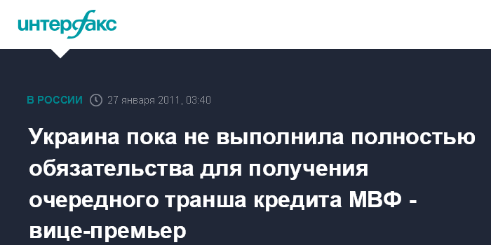 Киев. 27 января. ИНТЕРФАКС-УКРАИНА - Вице-премьер - министр социальной политики Украины Сергей Тигипко заявил, что Украина пока не выполнила полностью свои обязательства для получения очередного транша кредита Международного валютного фонда.