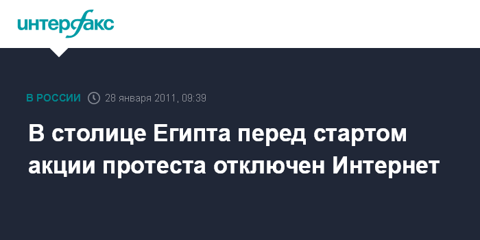 Каир. 28 января. INTERFAX.RU - Жители столицы Египта, Каира, в пятницу утром не могут подключиться к Интернету, сообщает агентство EFE.