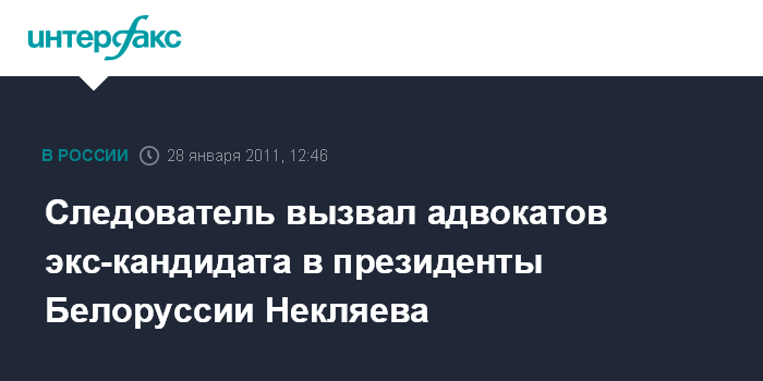 Минск. 28 января. INTERFAX.RU - Адвокатов экс-кандидата в президенты Белоруссии Владимира Некляева впервые в этом году пригласили для проведения следственных действий.