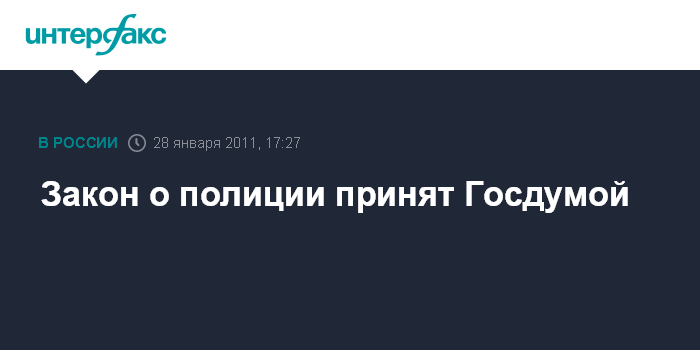 Москва. 28 января. INTERFAX.RU - Госдума РФ в пятницу приняла в третьем, окончательном чтении президентский закон "О полиции".