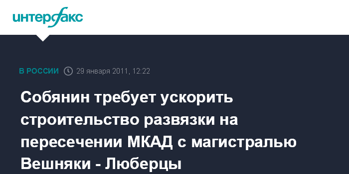 Собянин требует ускорить строительство развязки на пересечении МКАД с магистралью Вешняки - Люберцы