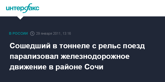 Сошедший в тоннеле с рельс поезд парализовал железнодорожное движение в районе Сочи