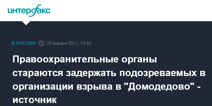 Правоохранительные органы стараются задержать подозреваемых в организации взрыва в "Домодедово" - источник