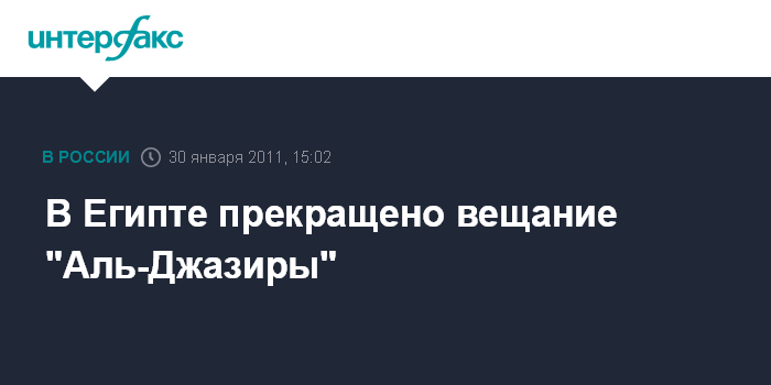Дубай. 30 января. INTERFAX.RU - Египетские власти лишили лицензии международную арабоязычную новостную сеть "Аль-Джазира" и аннулировали аккредитации у ее сотрудников в Каире, сообщает сайт телекомпании в воскресенье. Представитель "Аль-Джазиры" сообщил, что канал получил уведомление от министра информации Египта о закрытии Каирского бюро в воскресенье утром. Он отметил, что не смотря ни на что, компания будет продолжать всеобъемлющее освещение событий в Египте.