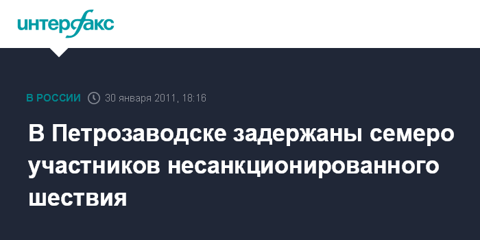 Петрозаводск. 30 января. INTERFAX.RU - Милиция Петрозаводска в воскресенье задержала семерых участников несанкционированной акции, устроенной в центре карельской столицы. Как сообщили "Интерфаксу" в УВД Петрозаводска, задержанные молодые люди ранее неоднократно привлекались за участие в подобных акциях, все они местные жители. В УВД отметили, что все задержанные входят в радикальные группировки, а также фанатские (на некоторых были шарфы "Спартака").