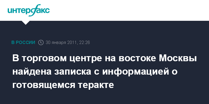 В торговом центре на востоке Москвы найдена записка с информацией о готовящемся теракте