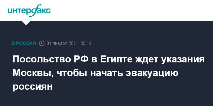 "Мы уточнили списки россиян, находящихся в Египте, и выстроили очередность вывоза наших граждан. Сначала это будут жены и дети командированных по линии различных российских организаций, госучреждений. Потом сами сотрудники. Потом все остальные", - сказал он.