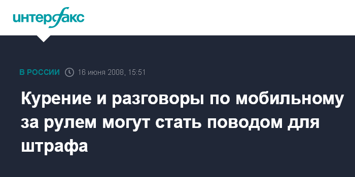 Москва. 16 июня. INTERFAX.RU - Автолюбителям, привыкшим говорить по телефону и курить за рулем грозит штраф до 3000 рублей.