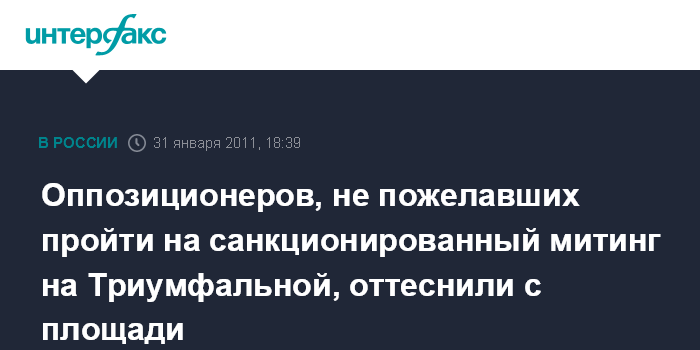 Москва. 31 января. INTERFAX.RU - На акции оппозиции в Москве около 30 человек отказались проходить на санкционированный митинг на Триумфальную площадь и начали скандировать: "Свобода!".