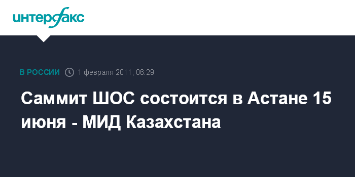 Саммит ШОС состоится в Астане 15 июня - МИД Казахстана