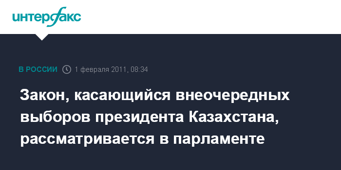 "В ближайшее время он (Н.Назарбаев. - ИФ) внесет, может быть уже завтра, свое предложение в парламент, ну а дальше уже процедура будет определена: как, в какие сроки" проводить досрочные выборы главы государства, сказал он.