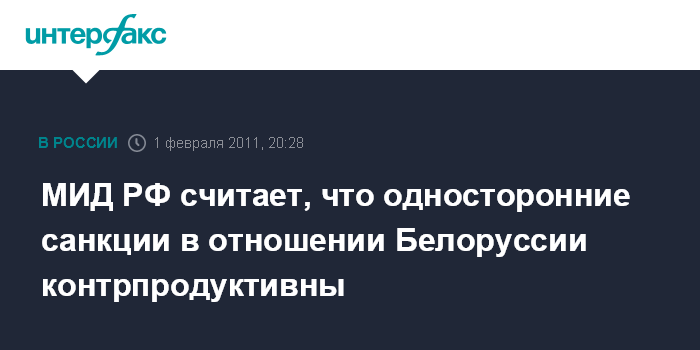 МИД РФ считает, что односторонние санкции в отношении Белоруссии контрпродуктивны