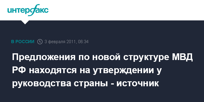 Предложения по новой структуре МВД РФ находятся на утверждении у руководства страны - источник