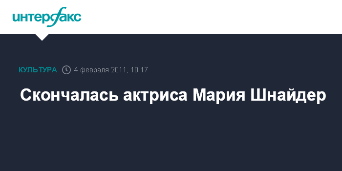 Москва. 4 февраля. INTERFAXRU – Известная французская актриса Мария Шнайдер, сыгравшая главную роль в знаменитом фильме Бернардо Бертолуччи "Последнее танго в Париже", скончалась после долгой болезни в возрасте 58 лет, сообщает ВВС.