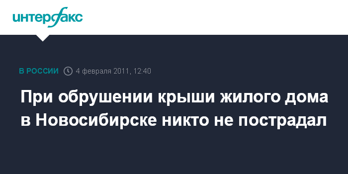 Новосибирск. 4 февраля. INTERFAX.RU - Жертв и пострадавших в результате обрушения крыши жилого здания в Новосибирске, произошедшего в пятницу, по предварительным данным областного МЧС, нет.